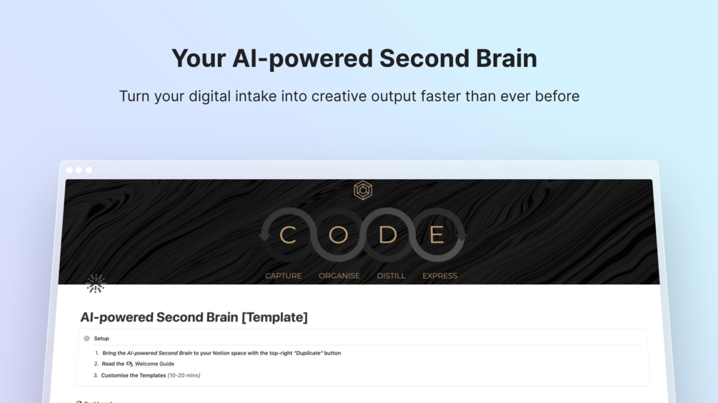 Get ready to leverage the best AI features that Notion has to offer to build or power up your Second Brain. Harness your digital intake and expand your creative output, faster than ever before.